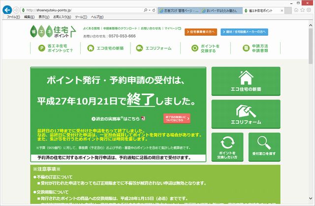 住宅リフォームエコポイント事業が予算の上限に達したため受付終了になりました。