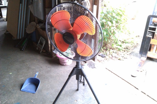 猛暑の中活躍しました畳表倉庫にはエアコンが設置してあるのですが作業スペースにはありません。