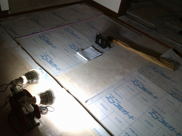 測定器を置いても滑って動きやすいし養生を大きくはがしてしまうと戻すのが大変なので最小限に・・・