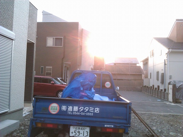 今回は「連休に新築見学会がある」とのことで他の工事も急いでいたのですが結構押してしまい畳の納入は当日の朝一番になってしまいました。