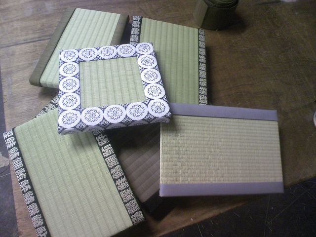 DCF_0108.jpgすこし時間が空いたので11月6日、7日に富士の中央公園で行われる「商工フェア」へ畳組合が出店するため販売用のミニ畳を製作していました。