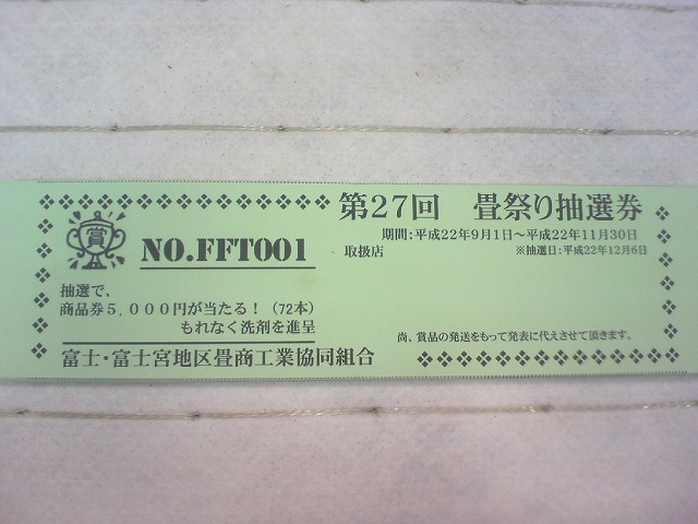 抽選券今日から11月30日まで静岡県の組合加盟店で「たたみ祭り」キャンペーンが行われます。