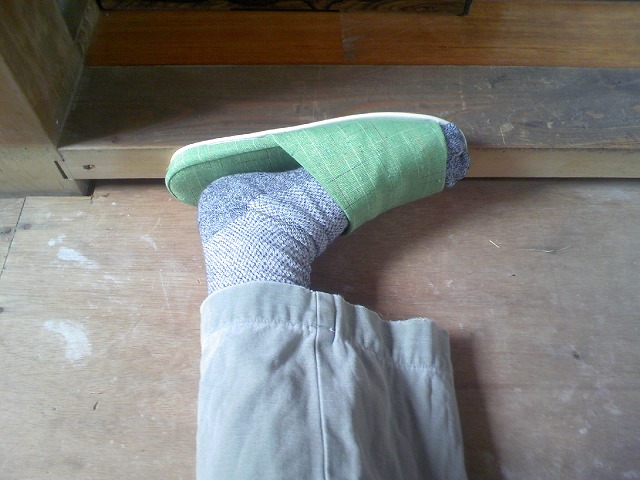 DCF_0281.jpg古い畳を処分して新床畳の製作の仕事なので寸法計測をしなくてはならないのですが計測前に敷居や畳寄せが動いてないか足で蹴って点検します。