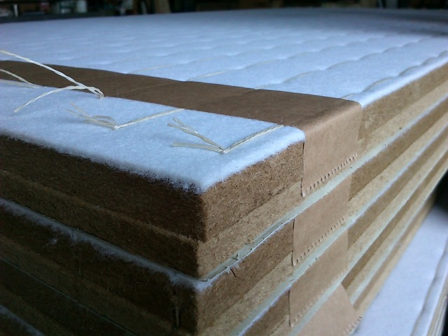 今回床厚が薄目(約30ミリ)のため固さを心配したお客様のため特注で厚い保護材(約2mm程度の不織布)のついた畳床をオーダーしました。