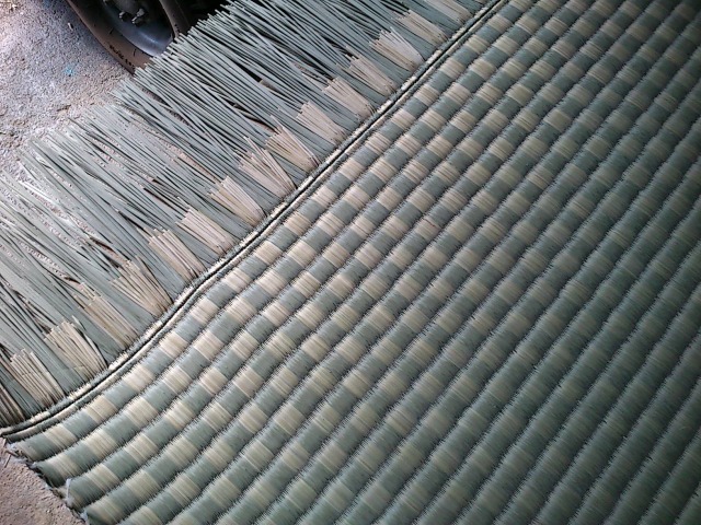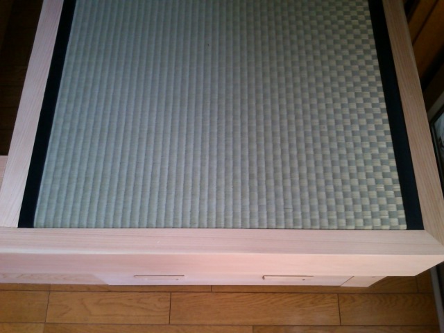 国産市松柄の畳表を指定されたのですがこあがりの畳スペースに使用するため幅が狭くそのまま施工すると柄の部分ほとんど切り落としてしまうため相談して外側中心に柄を出すように施工しました。