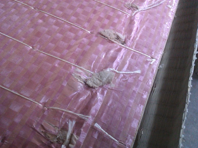 年数経過したり湿気ている木質系ボードの畳床は柔らかく脆くなってるのでそのまま逢着作業を行うと砕けて穴が開いてしまったり欠けてしまうことがあります。