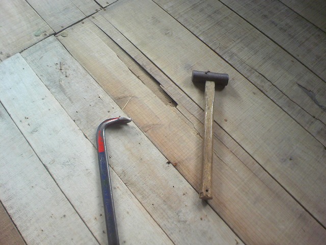 DCF_0374.jpg先日「合板は弱い」と書いたのですが杉板等無垢材の場合にもやはり劣化はします、経年によりしなりが少なくなり割れが発生します。