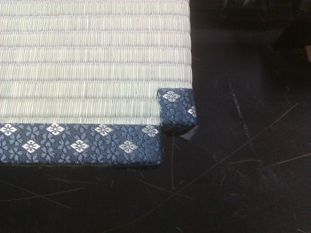 畳に柱の分の切り込みを作ります畳縁より大きい段差や柱部分はそれに合わせて畳を切って納めますが写真のような「小さい切り込み」は機械では出来ないので手作業で行います。