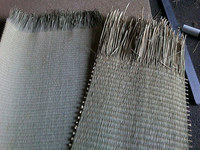 左側のは目積畳表で通常の畳に使われているい草を細目で織りあげた畳表です