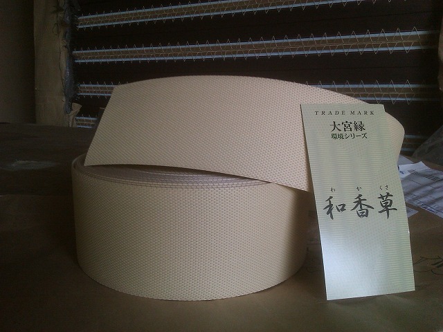 ただこの縁普通の化繊の縁と比べて厚いのと硬いので少し小さめに畳を制作する必要があります。