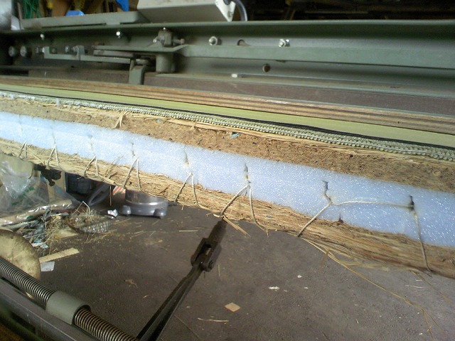 DCF_0245.jpg表替えに伺ったところ「フカフカする」とのことで見てみると藁サンド型の畳でした、20年以上たっており発砲フォームが潰れて柔らかさが出てしまっているようです。