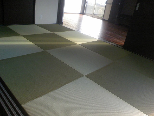 六畳間に半畳12畳先日急遽制作した縁無畳を納品してきました。