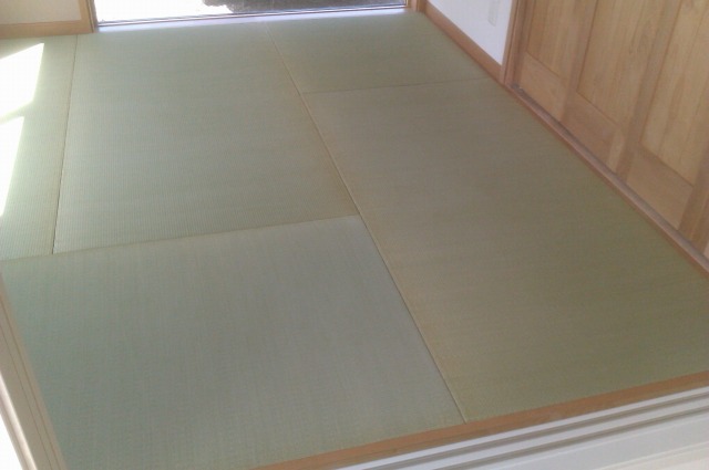 4.5畳の縁無の場合半畳9枚が多いのですが今回は通常の敷き方です縁無畳で4.5畳間の場合市松状に半畳で9枚のことが多いのですが今回は通常の敷き方でとのことで納品しました。