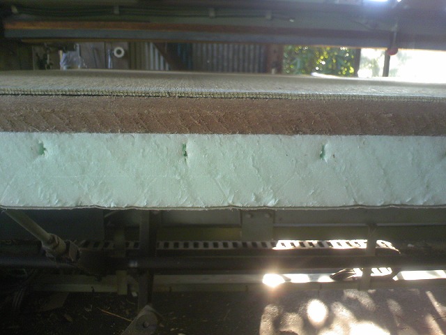 これだとかなり早い時期に凹みが発生します、もちろん表面保護材もなし。