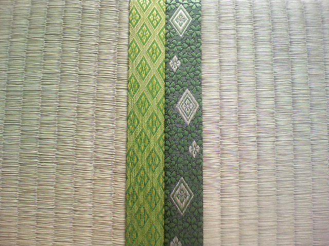 DCF_0093.jpgちょうど当店で通常在庫している畳表で一番良品と安い表を使う仕事があったので比較のために並べてみました。