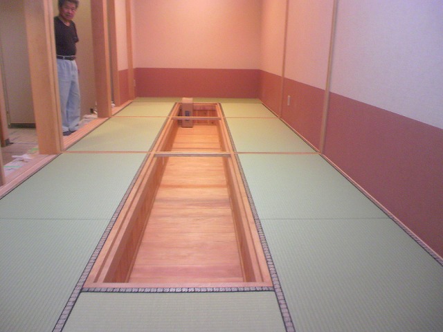 このように一列に並べたり一畳だけ枠に収めるのは普通の部屋より採寸や製作が少し大変でうまく入るか心配しますが何とか仕上がりました。