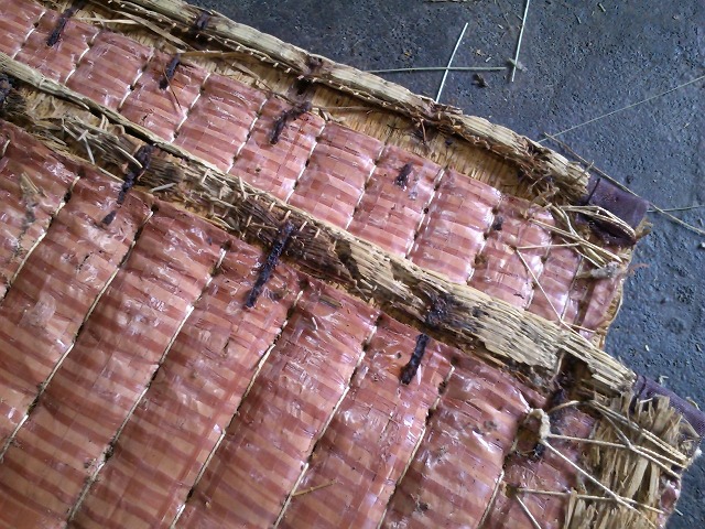 畳表を逢着ではなくミカン箱なんかに使われる大きいホチキスみたいな金具でとめてあるのですが長年の使用で腐食してボロボロになってます。