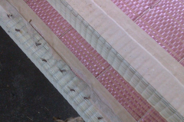 おそらく60年以上は経過してると思いますが落ちた藁も風化して粉になってしまうほどです、ここまで昔の畳を見るのも久しぶりです。
