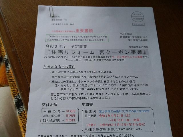 今年度も住宅リフォーム「宮クーポン」事業が行われます。